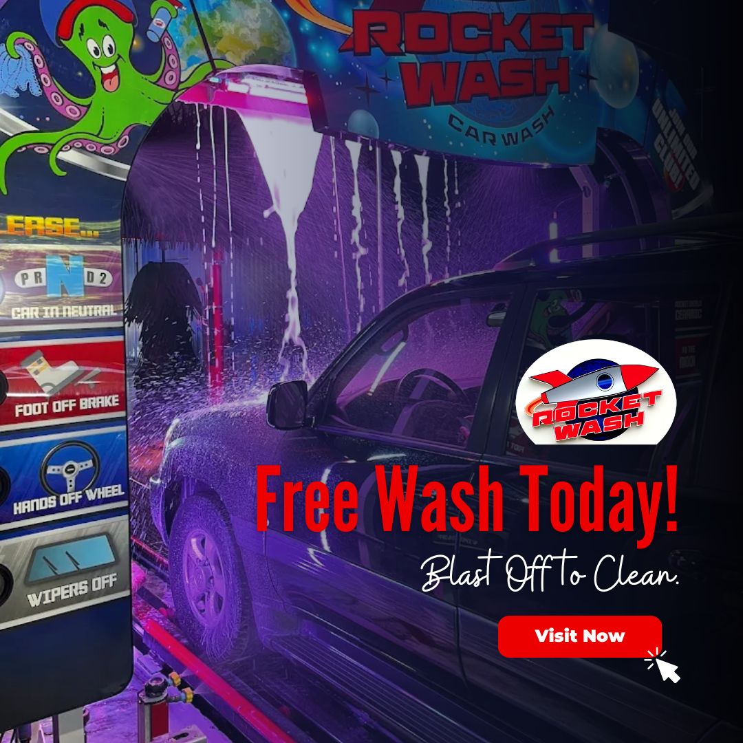 Your car’s best clean is now free! Visit Rocket Car Wash and grab your free wash today. Speed, shine, and satisfaction, all in one stop.