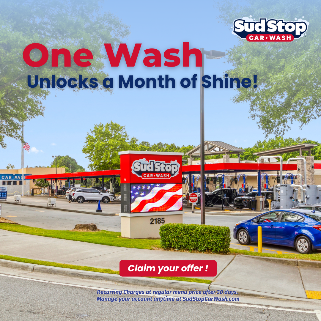 One wash unlocks 30 days of unlimited shine at Sud Stop!