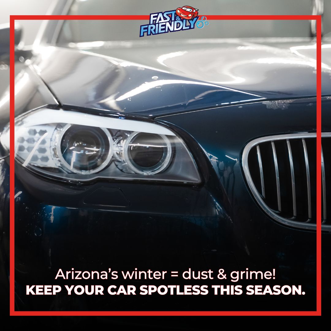 Arizona’s winter season might not bring snow, but that doesn’t mean your car doesn’t face its own set of challenges. Dust storms, unexpected rain, and fluctuating temperatures can all impact your vehicle’s appearance and performance. At Fast & Friendly Car Wash, we know how essential it is to keep your car in top condition, even in Arizona’s unique winter climate. Here are five reasons why frequent car washes during the winter months are crucial for Arizona drivers.