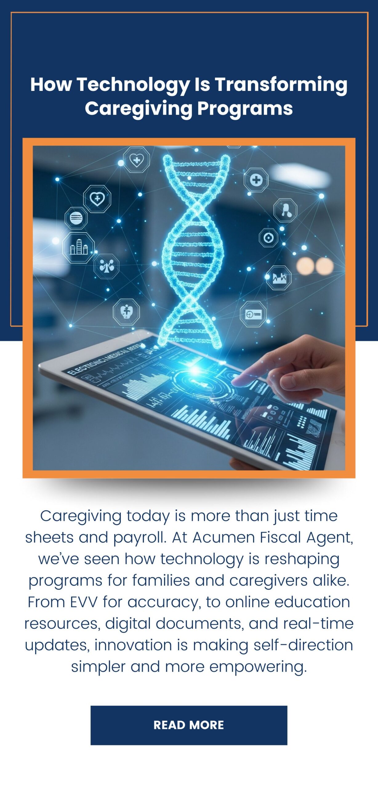 Caregiving today is more than just time sheets and payroll — it’s about empowering families and caregivers with the right tools to succeed. At Acumen Fiscal Agent, we’ve seen how technology can simplify processes, improve communication, and increase independence. From Electronic Visit Verification (EVV) to online learning resources, digital solutions are reshaping the way caregiving programs work.