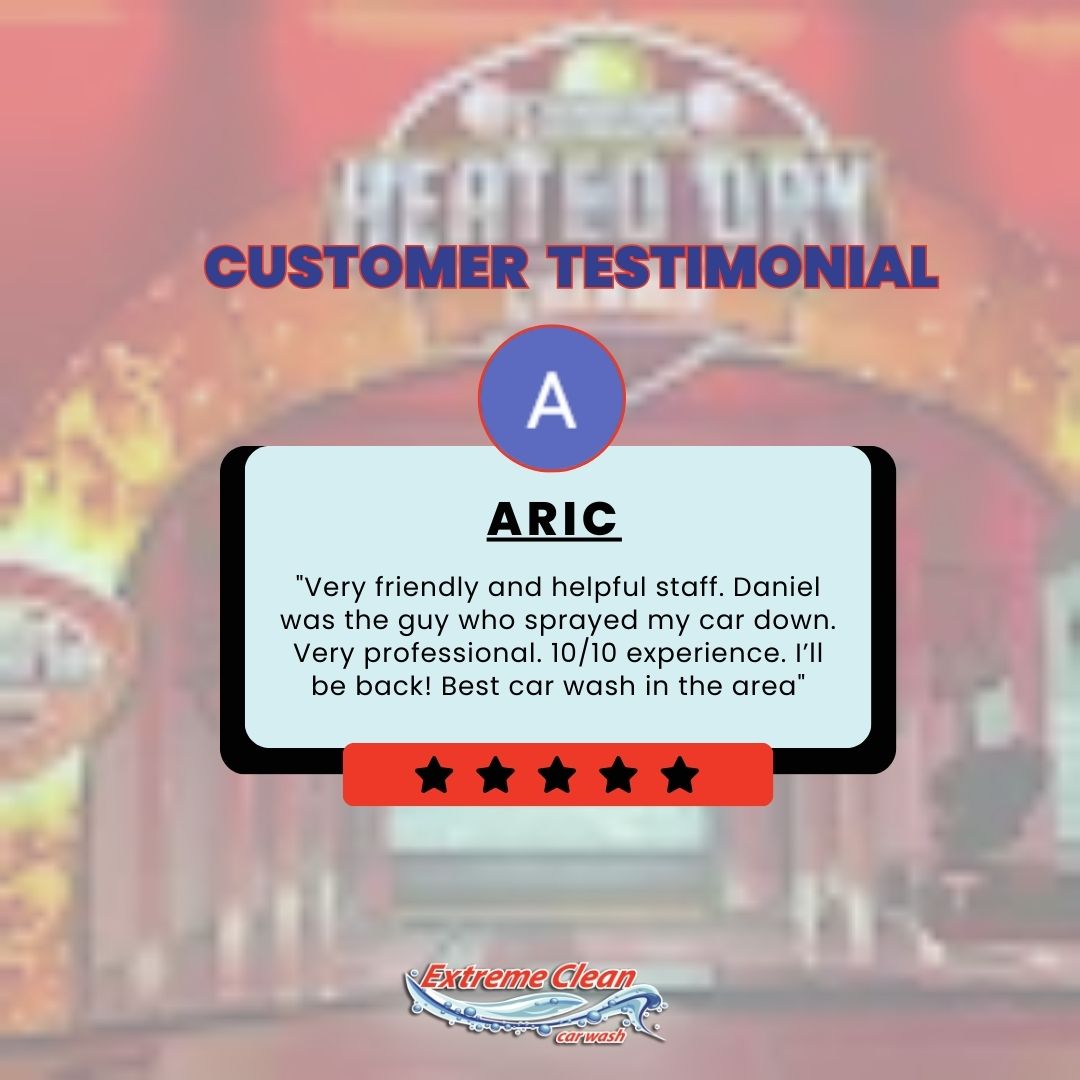 10/10 experience. I’ll be back!” ARIC shouted out our team (especially Daniel!) for going above and beyond. It’s not just the heated dry or the shine—it’s the service that keeps drivers coming back. Thank you, ARIC! 👉 Come see why we’re the highest-rated in town: https://extremecleancarwash.com #extremecleancarwash #carwashreview #customertestimonial #carwashwithcare #localcarwash #heateddry #carshinelovers #10outof10 |