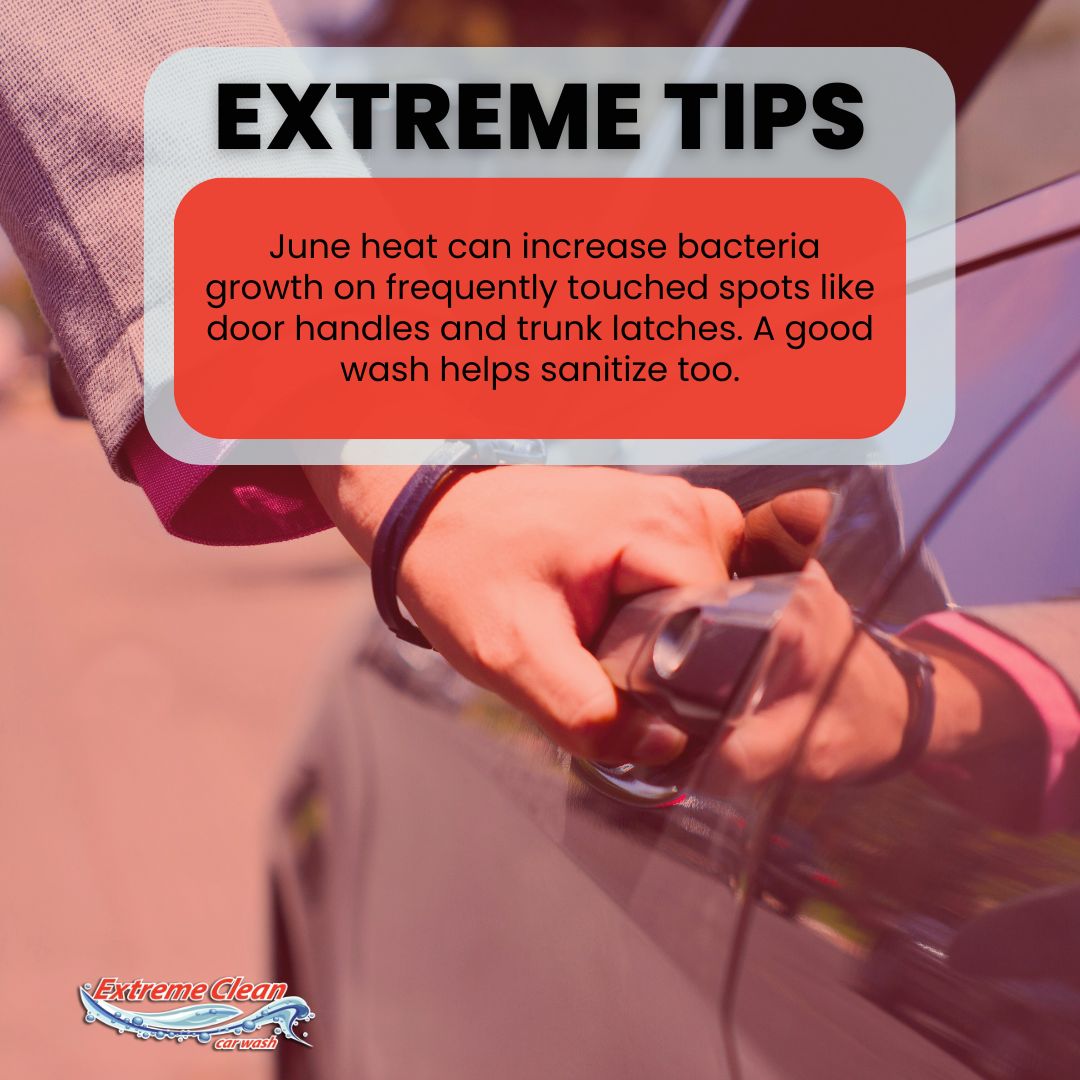 Summer heat = bacterial buildup on high-touch surfaces like handles, trunks, and latches. Don’t let germs linger—our wash doesn’t just shine your ride, it helps you drive cleaner too. Clean your car inside and out today → https://extremecleancarwash.com #extremecleancarwash #summercarcare #carhygiene #cleancarinsideout #juneheat #carwashbenefits |