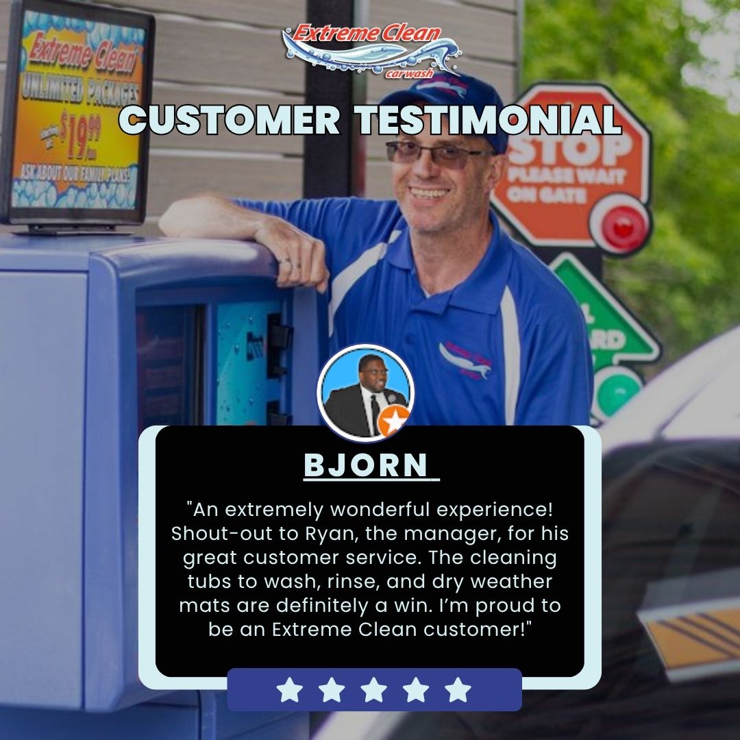 š£ļø āAn extremely wonderful experience!ā Shout-out to Ryan for delivering top-tier service, and kudos to our cleaning tubs for keeping those weather mats looking fresh. We love hearing from loyal customers like BjornāExtreme Clean pride runs deep! #ExtremeCleanExperience #CustomerLove #CleanMatsCleanRide #CarWashTestimonial #ArizonaCarCare |