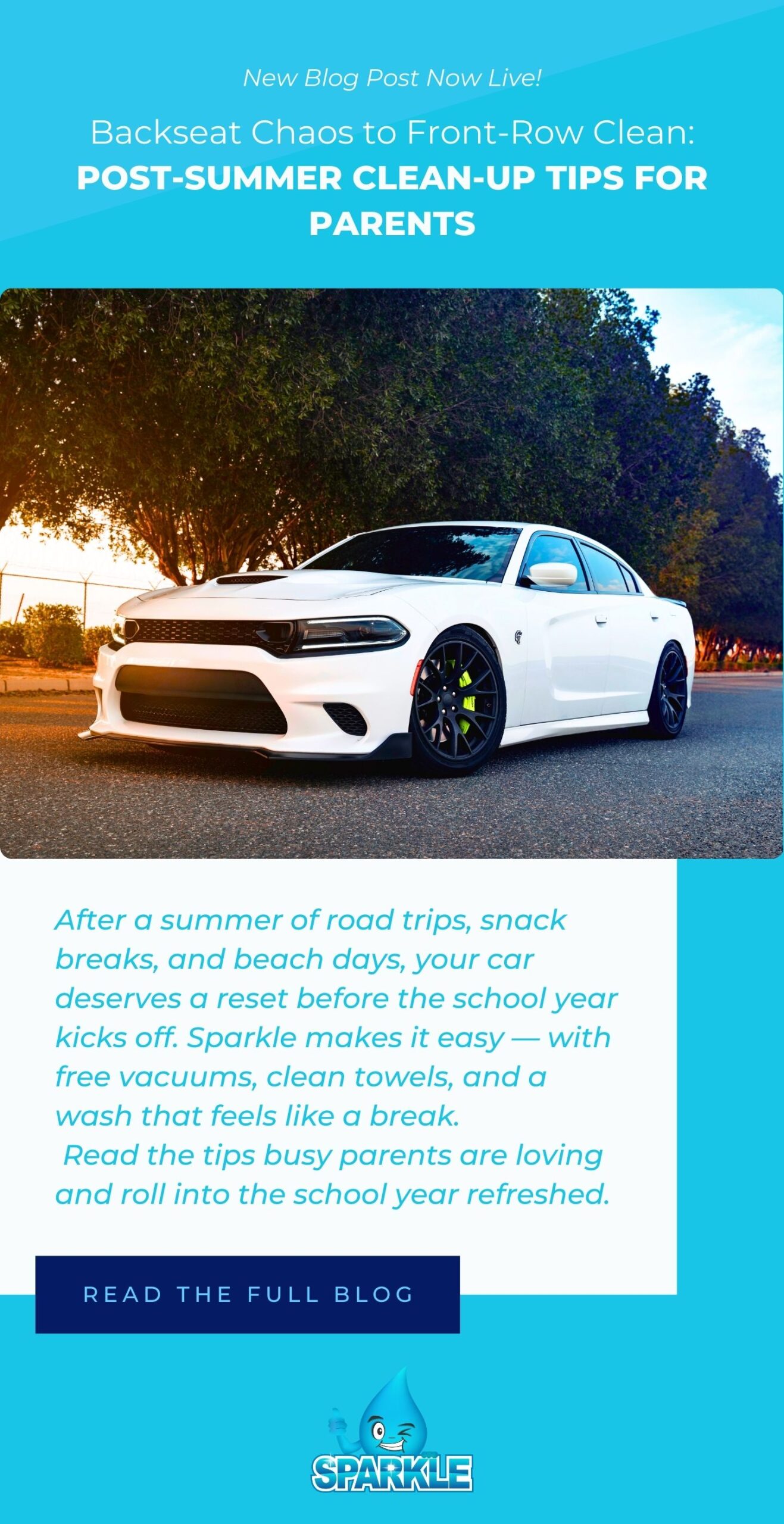 As August arrives and families gear up for back-to-school season, there’s no better time for a post-summer reset — starting with your car. At Sparkle Car Wash, we make it easy, fast, and even a little fun to take your car from backseat chaos to front-row clean.
